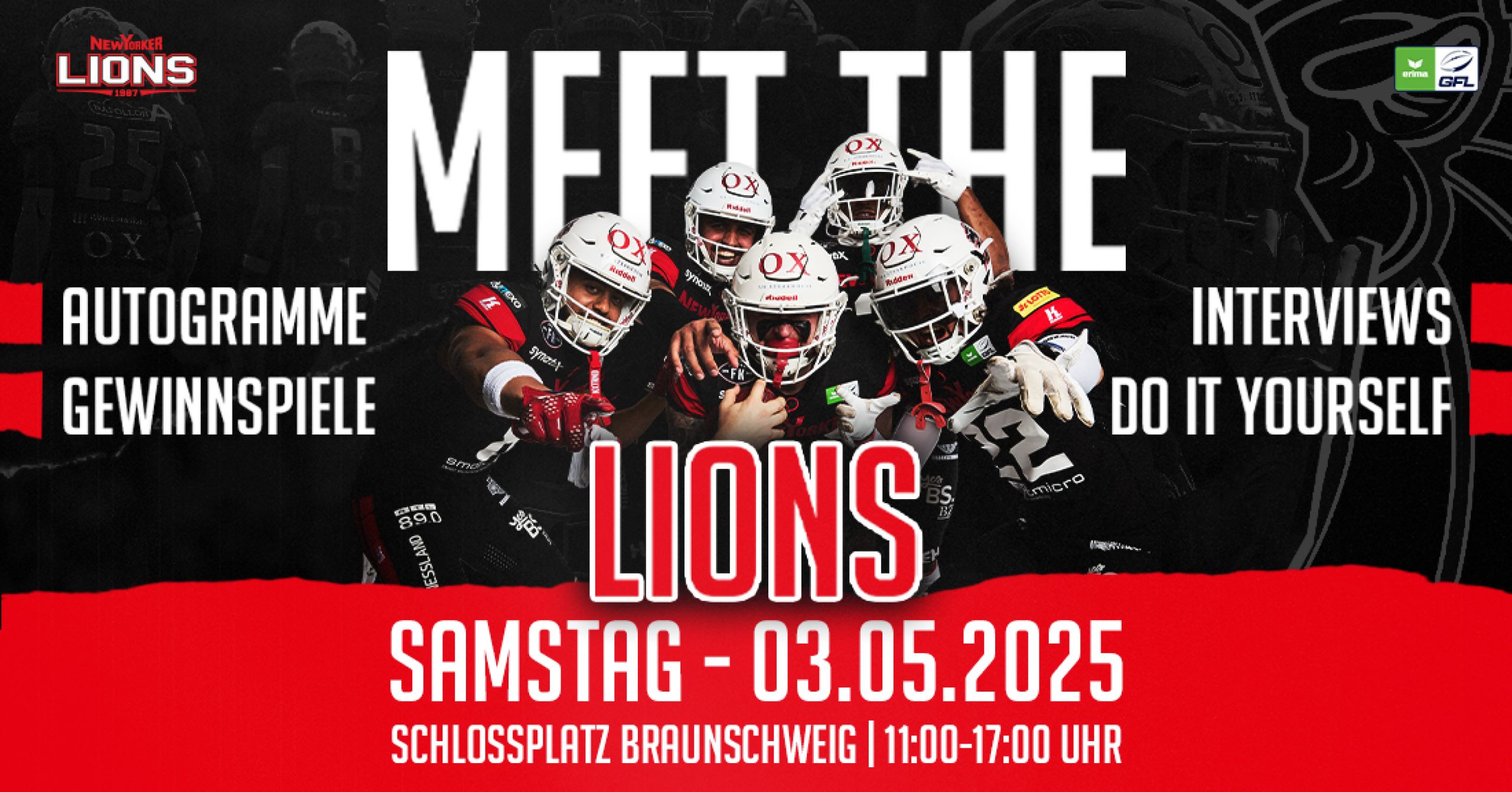 Am Samstag 03.05.25 verwandelt sich der Schlossplatz in Braunschweig von 11:00 bis 17:00 Uhr in das Revier der Lions! Sei dabei, wenn wir unsere Teams vorstellen, Football zum Anfassen bieten und gemeinsam mit euch einen unvergesslichen Tag feiern.